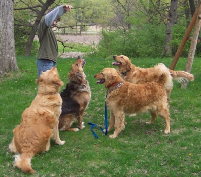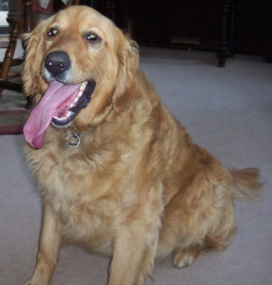 5/18/05: Sammy is here & what a GReat dog he is. He was surrendered by his previous family due to his owners' health issues and they felt they weren't able to care for him the way he deserved. He is 2 years old & comes with his AKC papers. He is a beautiful light blonde red golden color. I would guess his weight to be about 75 lbs. He has been living outdoors his entire life and has a history of allergies (not sure to what, but his owners thought maybe he was allergic to dirt???). Thus far he has been making himself very comfortable in the house. It took awhile to get used to all the new smells, not to mention all the new friends. He meet the other 3 resident dogs without any problems - Sammy just wants to play with everyone. He isn't house trained but we'll be working on that and thus far no accidents. Yeah Sammy!! Sammy does counter surf so we'll be working on that, too. He gets along great with kids of all ages, although he can be exhuberant at times and may knock over the smaller ones. Sammy is UTD and neutered, but we'll go to the vet on Friday for a health check and to get micro chipped. Hopefully we can help him with his allergies while we're there. If you're interested in this fine guy, please email Placement@ragom.org.