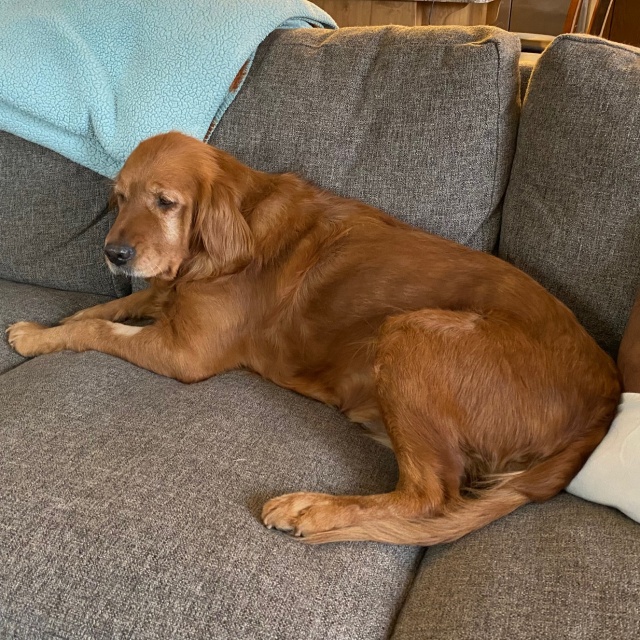 Sandy is a beautiful 6 year old field Golden Retriever who was came to RAGOM when she was found as a stray wandering around central Minnesota. Sandy can live with children over age 5, other dogs in the home, and gets along well with cats. She doesn't require a physical fence and is content to lounge and observe her surroundings. She is calm, loves people, easily walks or jogs on leash and is so well behaved. Sweet Sandy is just about perfect and will quickly become a treasured family companion.