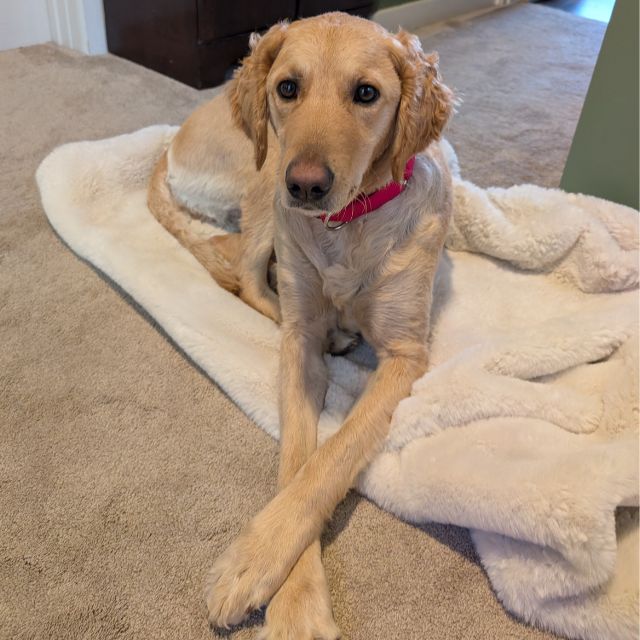 Skye came into RAGOM as an owner surrender. She is a healthy dog. Skye is good with kids of all ages and she can live with cats or dogs. She does require a fenced yard. Sweet Skye will need a little time to gain confidence as she adapts to living with her new family.