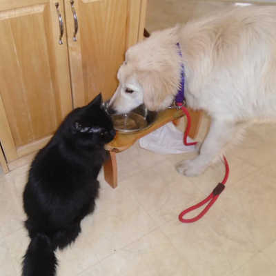 He loves to play fetch with the ball. He is an only dog at my house, but does interact very well with my cat. He loves being petted and has learned that Golden nudge! He has been great with my 6-year-old granddaughter also. Sully is a nice, easy-going, mostly calm dog who is a real joy to have in my home. He is still a puppy, so we need to keep an eye on him for those untouchable things. He would make a wonderful companion to any home, probably with or without another dog.
