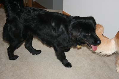 It’s difficult to photograph a black dog and her pictures don’t do her justice. She is wonderful with young children (4 & 7yrs), playful, very gentle taking treats, walks perfectly on a leash, and great in a car. She slept through the night in our bedroom floor without making a sound, and we are working on potty training.