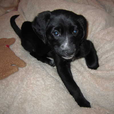 Housebreaking was going well until last night's wind and snow . . . right now, she isn't so sure about venturing into the new powder. We'll keep working on that. And working on getting her comfortable being in her crate alone.