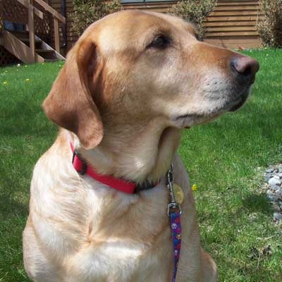 Tanna, a 10 year old, Golden/Lab, arrived on Friday. She sashayed through the house like she'd lived here forever and totally charmed the resident lab. I've yet to find anything but pure sweetness in this good girl...she loves to go for walks and rides in the car, has shown no aggression, doesn't counter-surf, is housetrained, and has been completely trust-worthy when left alone in the house.