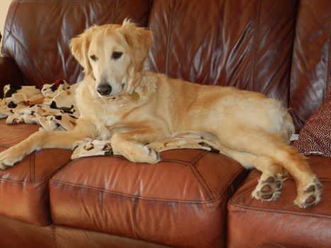 Now that all that is covered, I just want to say that Monty is a sweet, happy dog who acts like other 9-month-old dogs. He has already shown signs of settling in at my house, and today when we returned from the vet, both my dogs were wagging their tails, very excited to see him. I am able to walk three dogs at once, so I know that he is a good walker. I think someone will be getting a great, highly-trained puppy who is well past the potty-training, sharp-puppy-teeth stage and on his way to being a wonderful dog. If you are interested in Monty and have the time, energy, and commitment that raising a young Golden Retriever takes, please fill out an interest form.