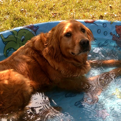 She is looking for a forever home. I think she will make some humans very happy. She isn't fond of fireworks, but then neither am I. Her favorite thing next to getting petted, is lounging in the pool. I have to say though, this girl can use some exercise, and gosh darn it, she could shed a few pounds. So, more updates to come. In the meantime, take a look at this good looking, gentle spirited, lovable 6 year old female Golden. As you can see, she is adorable.( Not quite as good looking as I am though!)