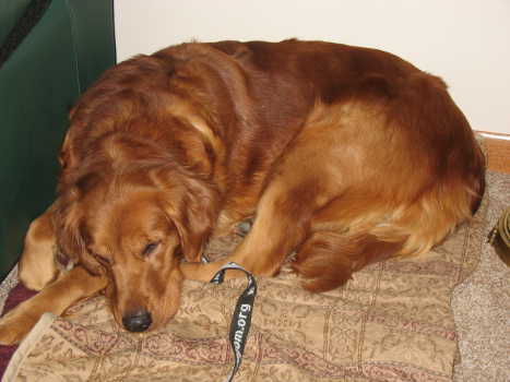 I would like to introduce this stunning redhead to the RAGOM family. Our Tess is a 3-year-old (BD: 06-08-2010) gorgeous auburn red girl who was released on October 19 from a commercial breeder. Right now, Tess is trying her best to work her way into our home routine. Tess is much more skittish and afraid than the other two girls I had from the same farm. She still isn't eating very well, but I attribute that to the fact that all the dogs there were penned together and must have had free-roam eating. At our house, I feed twice a day, so sometimes she only eats a few bites and then heads to her safe area, perhaps thinking she will eat more later. Unfortunately, since our resident dog likes having her dish available and has been helping himself to her food, I pick her food up and offer it to her at different times during the day in her kennel. She is getting the hang of this routine, so it won't be long before she is chowing down like the RD.