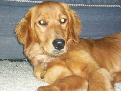 Welcome Tess to the RAGOM family! Tess is an adorable 6 month old Golden! She was rescued from a puppy mill in Iowa, and has joined RAGOM hoping to find a new Golden life with her forever family. Since she came from a puppy mill where she was not very well taken care of, she is still a little skittish and scared, but the curious puppy side is starting to take over!