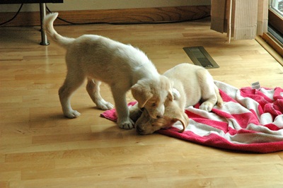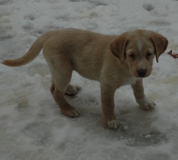 Welcome Tilly to RAGOM! She is a beautiful cream colored 9 week old, 14-pound puppy - ½ GR, ¼ yellow lab and ¼ Australian Shepherd. She has been with us for a week and is a very well adjusted girl. Her siblings are blind, but Tilly showed them the ropes. She is doing great on potty training, mostly outside – but if not she goes at the door on the towel/papers when I don’t get to her in time J. I can only carry two out at a time!