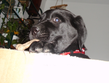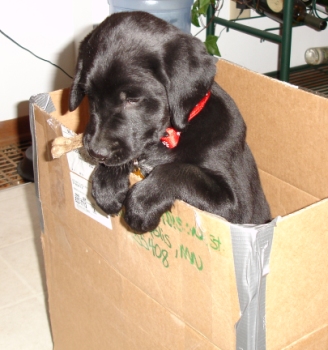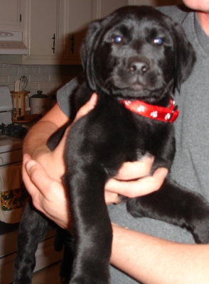 4/23/06: Tina, our new black Golden/Lab puppy, came with her two sisters tonight from NW Minnesota. She will be 8 weeks old on 4-25. So far all we know about her is that she is shy, very mellow (slept in the car the whole way!!!) and she is very photogenic. More details to come after we get to know her and she sees the vet later this week.