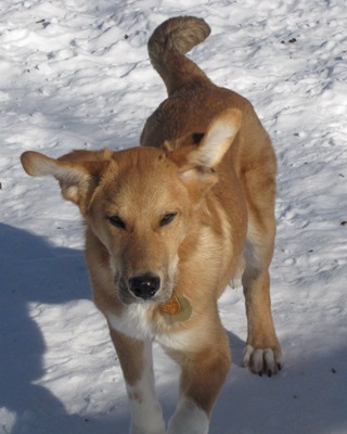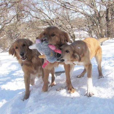 Toby is a growing pup. At his vet check he weighed in at 37 lbs. He has very expressive ears. They go forward, back, up and down. You might notice that his most distinctive mark, is his white socks in the front. He has a lot to learn, this young pup. I don't think he has ridden in many vehicles before. He is a little leery of my car, so I have to pick him up and carry him to it. But with time, riding in a car will be normal to him. He knows sit, but with so much excitement he doesn't sit for very long and eventually starts jumping. Right now we are slowly working with him, so he doesn't jump up on us. But with each jump he does, you can see on his face how happy he is loving his life. Toby is not 100% potty trained. He knows outside is where he needs to go potty. When all the dogs start playing and wrestling, then they start drinking water, and wrestle again, that's when an accident has happened. When they are being that active, I try to let him out every 30-45 minutes. Toby loves the toys. The first night he emptied the entire toy box. Not even my own dogs have ever done.