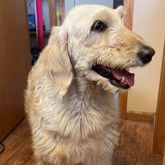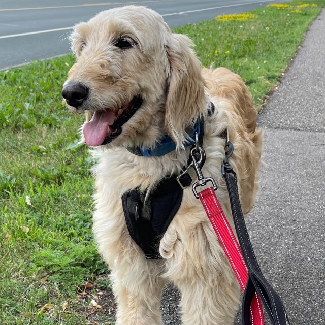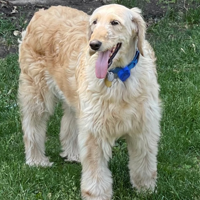 Tori is a 6 year old Golden Doodle breeder mama that came to RAGOM from a commercial breeder. She is a bit nervous but learning from other dogs how to navigate her new world. She will need another medium to large confident dog in the home. Kids should be over 10 years of age just because younger more unpredictable kids may scare her. She has not been tested with cats. She is very curious about what humans may have to offer her in the way of affection. She is just a bit cautious but friendly. Tori won't need a physical fence as long as there is a good plan to keep her safe. Tori will become a treasured family companion and really likes to go on walks so she could be a good walking buddy.