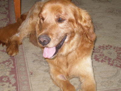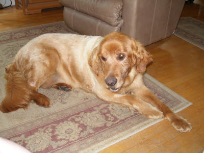 A new RAGOM golden has arrived! Tucker came into foster last week and boy did he have a busy first few days. He went to the vet on day two to get checked out and this big guy has some medical issues we are working to resolve ASAP. Tucker was neutered prior to his surrender so that is one thing we could check off the list right away. He is up to date on his vaccinations and we are working on a double ear infection that is going to be cleared up within the next week. I am sure it feels good to have that taken care of. Tucker also needs to lose about 15 pounds. He is 10 years old and weighs in at 89 pounds.