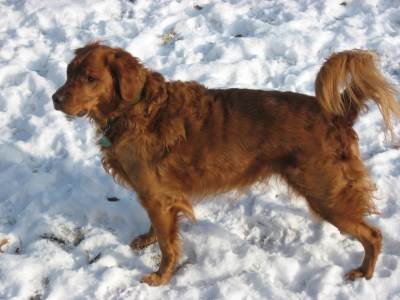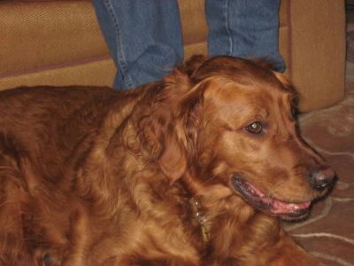 Tucker is a lovely copper-colored neutered male golden retriever who arrived at our house a week ago full of energy and with a very engaging smile. At three years of age and 80 pounds, Tucker is strong, playful and always ready for a good time. Tucker came to us accompanied by a full box of goodies -- his family had clearly loved him and supplied him with all the right leashes, food, training treats, and toys. Unfortunatley, his family was going through a divorce and could no longer keep him but knew that Ragom would take good care of him.