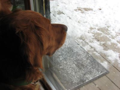 Tucker is very smart - in addition to sit and down and the routine kinds of things, he's very smart about meeting other dogs and respecting their space. He took his time meeting our resident dogs and within two days had settled into the household sharing toys and fitting into the daily routine. He is a great snuggler and waits to be invited up on the furniture, a lovely trait. He would prefer to sleep up on the bed with us but is also very good about getting into his kennel for the night as well. He has been to the vet and is current on all his shots and tested negative for heartworms. He is a big baby about getting his toe nails trimmed so we're spending extra time playing with his feet and working on making that a more positive experience for him. Tucker keeps an eye on his people and we've now learned to keep an eye on him too! Turns out that Tucker is an expert-level counter surfer so we've already started working with him on that. He loves to be groomed and petted and absolutely loves to go for a ride. Because it's been very cold and the sidewalks are slick, we haven't taken Tucker for any serious walks yet. He's very strong so we're going to work with him on leash manners and also try to get him more exercise so has a chance to burn off some of his energy and lose a few pounds at the same time. His owners indicated that Tucker has a very strong prey drive so at this point we do not feel that he is a good candidate for a household with cats. His strength and energy would not necessarily be a good match for a family with small children although he does seem very interested in children. At this point, we think Tucker would do best in a household with a fenced yard where he would be safe and no bunnies would be there to tempt him. We'll have more to share about Tucker in the next few days!