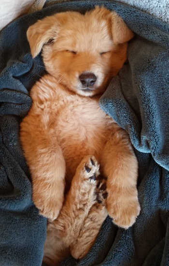 Please give a warm welcome to one of the youngest new members of the RAGOM family, Tucker! He arrived from a large group of pups rescued from an Indian reservation in Nebraska and he is said to be a Golden Retriever/Australian Shepherd mix. He is approximately 10 weeks old and not much is known about this sweet boy. But, he is already a little charmer!