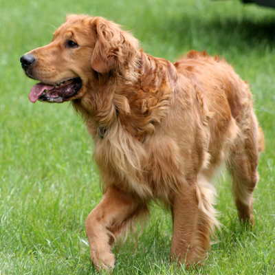 Vinnie, who will be 2 in January, is a gorgeous dark red PB Golden Retriever. He is 76 pounds, though his ideal is probably around 80 pounds. Vinnie was surrendered to RAGOM because his owner traveled for work and he wasn’t getting the attention he needed and because he needs medical attention for his hips and eyes. Vinnie was primarily an outdoor dog, but was allowed inside in the lower level of their home, so he does have some experience with being inside. All RAGOM dogs live indoors at their foster homes, so he is now enjoying being a spoiled, indoor dog!