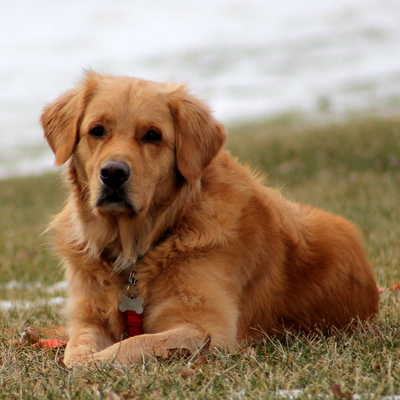 Wednesday, November 26th: Carla, a sheriff in southern MN, making her rounds on the back roads of southern MN, sees something in the ditch, probably another deer. She stops and finds a Golden Retriever with obvious rear leg/hip injuries. Carla carefully loads the unknown, injured Golden into her squad car and drives him to the nearest vet. Dr Diane confirms that this beautiful Golden has a broken leg and possibly other injuries. She does not have X-ray equipment or the resources to provide the extensive care this guy needs, so a call to our RAGOM hotline is placed. At the same time, social media is being used to locate the owner.