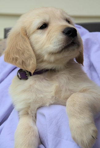 Waylon is a gorgeous English Cream Golden Retriever puppy born on May 18th to Patzy 17-106. He has had his first round of vaccinations and will be neutered in a couple of weeks. He is a typical 6-week-old puppy--chews EVERYTHING, digs, runs, and tumbles over his own feet. Just adorable! And very snuggly. He has been socialized with all ages and colors of people, many types of noises from vacuum cleaners to lawn mowers, thunder, planes, etc, floor surfaces, and is very well-adjusted. His socialization will need to continue in order for it to be sustained. He has a lot to learn, and it is a big responsibility to assist a puppy to become a well-adjusted adult dog. Are you committed to helping him be the best dog he can be?
