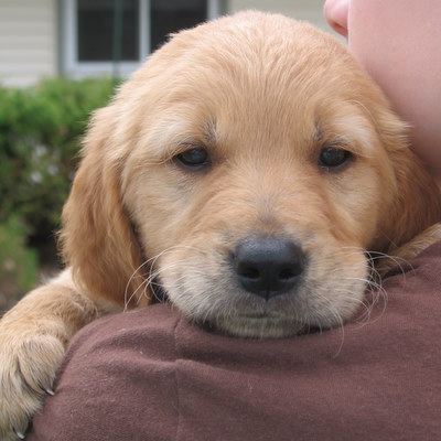 Meet Wrangler, the shyest and reddest of the Blue Jean Brothers from Missouri. At 9 lbs. at 7 weeks, Wrangler is a robust and healthy puppy but definitely the most timid of three. He is an absolute love, though, and there's nothing sweeter that cuddling up with his nose nestled beneath my chin. He has the biggest feet of all three puppies at our house, and is most easily able to amuse himself by chewing on a towel, playing with a toy, or just hanging out while his brothers wrestle with each other. We think he's going to need a forever family committed to helping Wrangler develop in socialization--exposing him to new experiences, people and dogs so he can build his confidence.