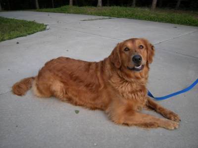Xochi is a purebred 3 ½ year old GR weighing in at 87lbs, she is a little overweight but with regular exercise should drop the 5-7 extra pounds she is carrying. She is very sweet and like all goldens loves to be petted for as long as you are willing to. When you are done and tell her that’s enough she gives one or two more little nudges and then backs away and looks for either another human to pet her or a toy to play with. Xochi does appear to be very content as a single dog and will spend most of her time during the day lying by the patio door gazing outside.