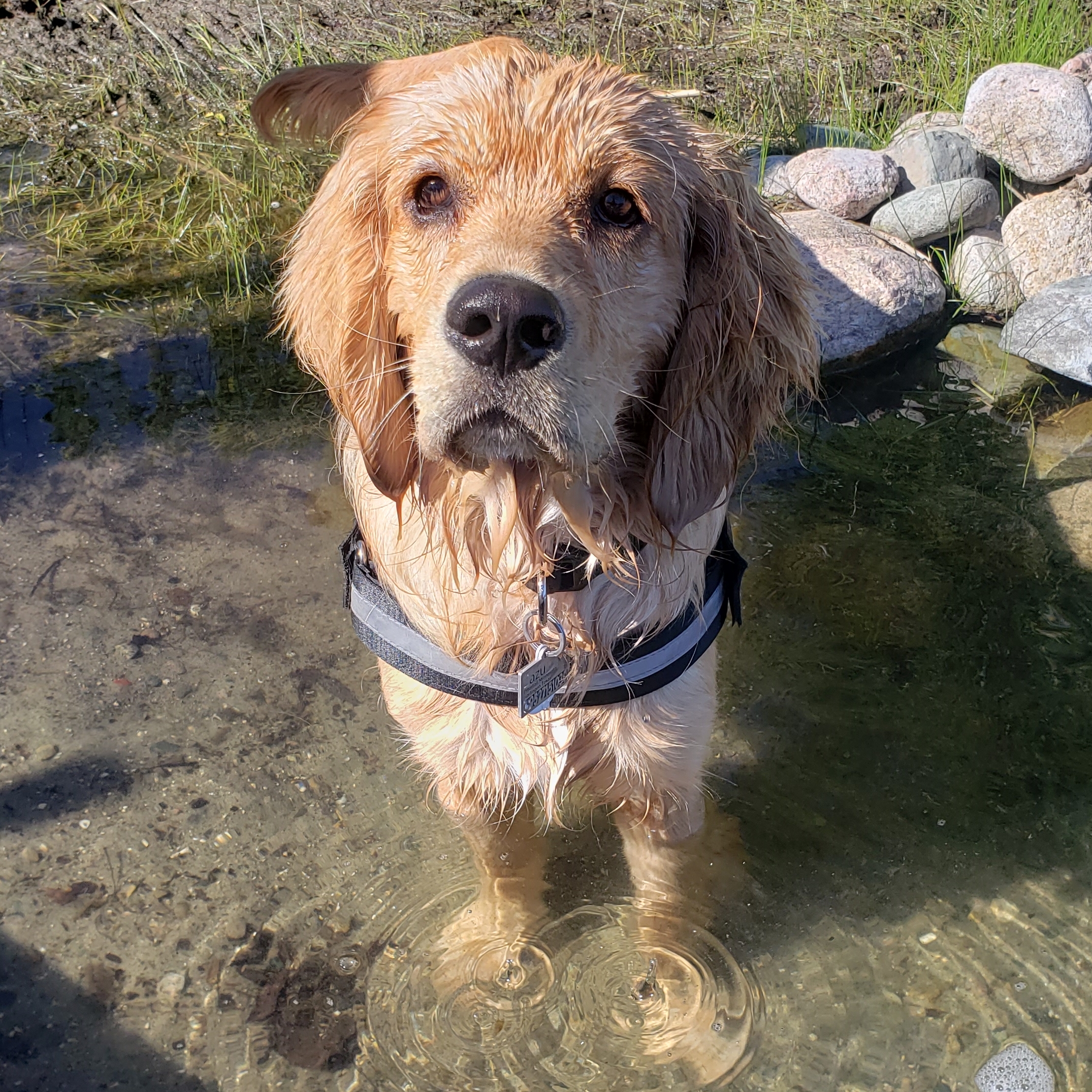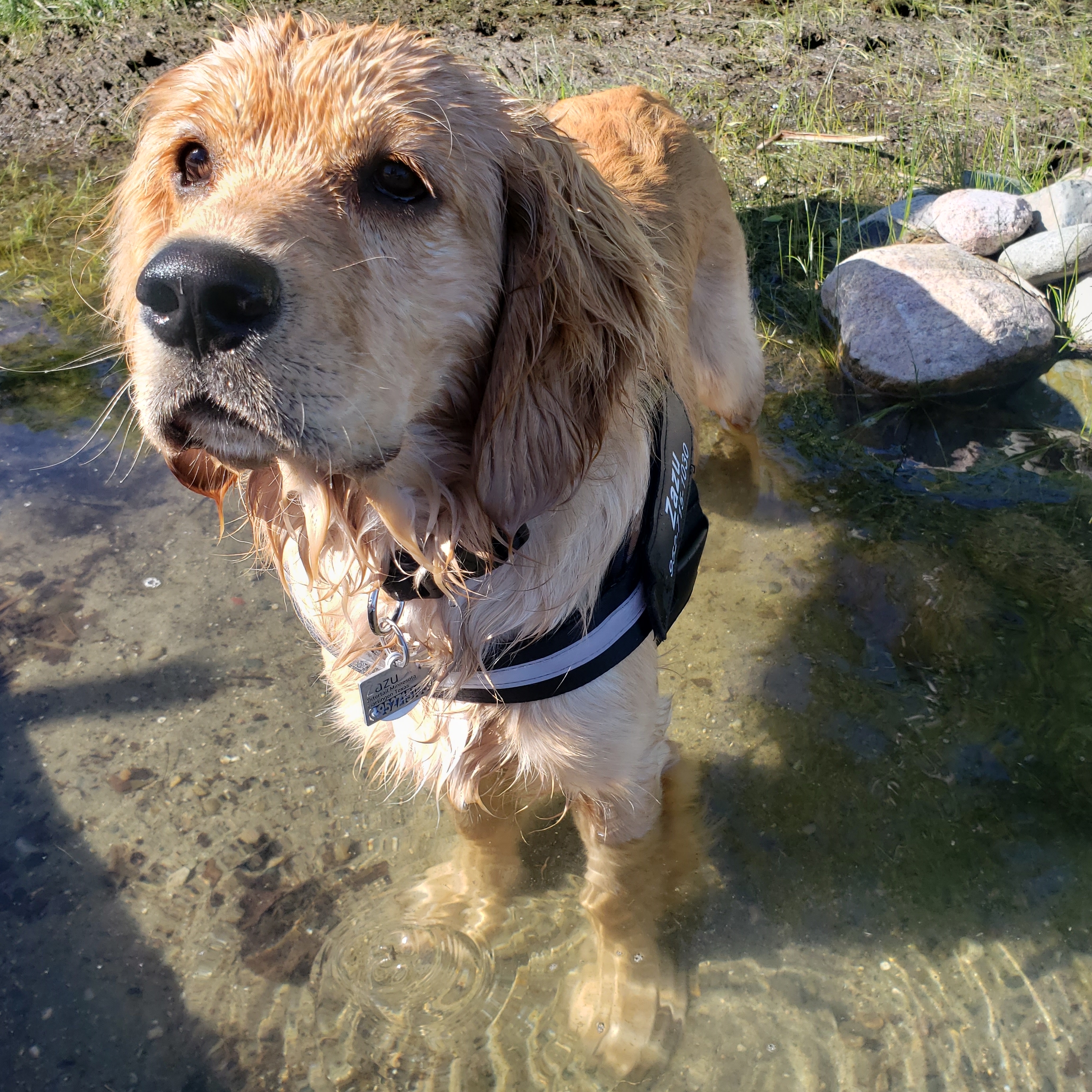 Zazu came into RAGOM from a commercial breeder dog auction. Zazu is a healthy young dog who is learning how to live in a home and is doing very well. Zazu can live with children in the home and can also live with other dogs. He has not been tested with cats. A physical fence is optional for Zazu as long as a solid plan is in place to keep him safe. He loves to learn and will thrive in a home where he can get exercise, training, and love.