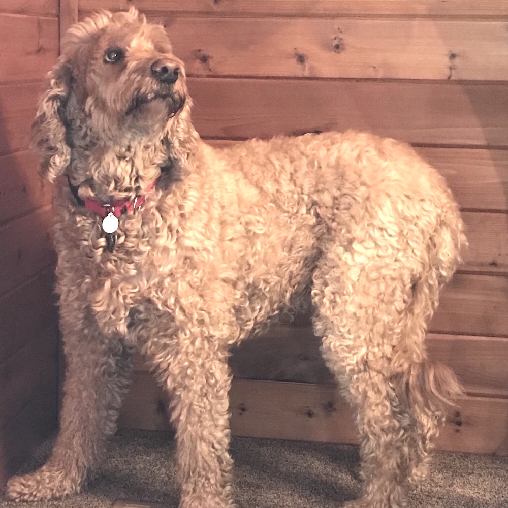 Zeeva came into RAGOM when her owner became ill. She is a majestic, full-size Goldendoodle with excellent house manners. Zeeva has medical conditions that designate her as a hospice foster, and as a result she will not be available for adoption. She will live out her Golden life as a much-loved family member.