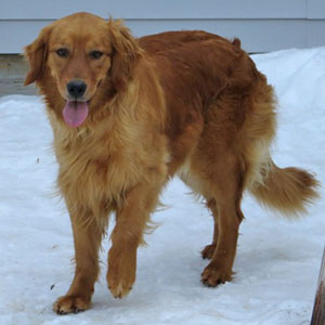 Zoey is a gorgeous purebred 2-year old female that came to RAGOM from a commercial breeding kennel. Zoey met the other six dogs in her foster home with no problems. However, it took her a few weeks to feel comfortable and there were some growls among all the girls for a few days. We have five females here which is similar to too many women in the kitchen where everyone thinks their way is the best way. Zoey and a couple of the females had to discuss who got the toys, especially the stuffed ones. She loves to surround herself with the stuffed toys and will then proceed to destuff them.