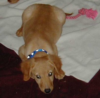 10/30/05: Zuzu is a 14 week old female that RAGOM rescued from a breeder who was getting rid of his stock because he couldn't afford to heat the building they were in. Zuzu and her brother Winston arrived on late Friday night, scared and dirty. They promptly got a much needed bath and were sent to bed.